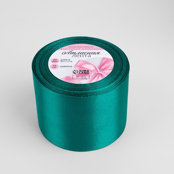 Лента атласная, 75 мм × 23 ± 1 м, цвет изумрудный №126 — Характеристики