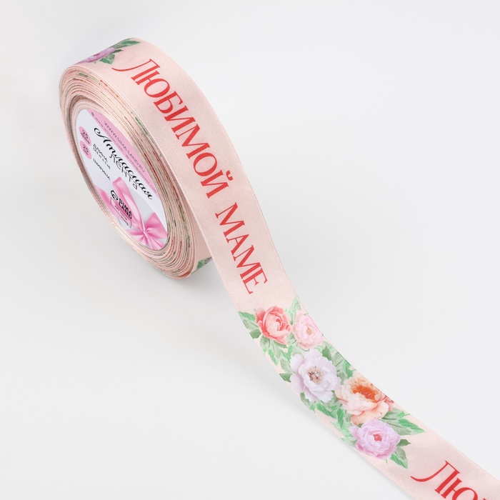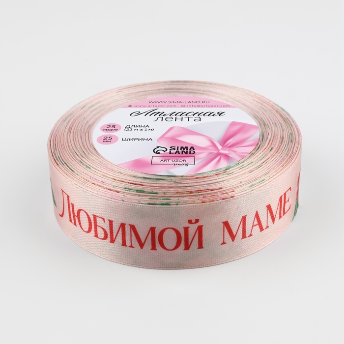 Лента атласная «Букет любимой маме», 25 мм, 23 м ± 1 м, нежно-розовая — Характеристики