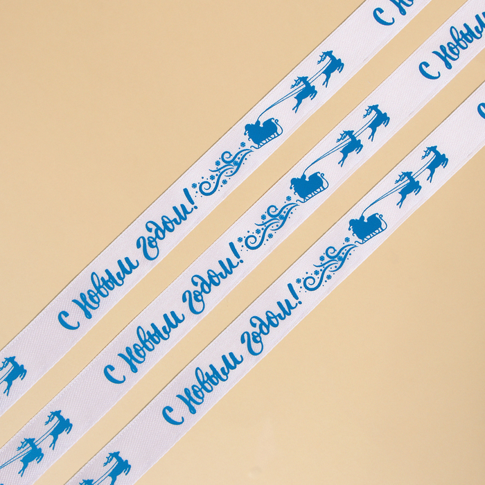Лента атласная декоративная «С Новым годом!», белая, 1.5 см × 5 м