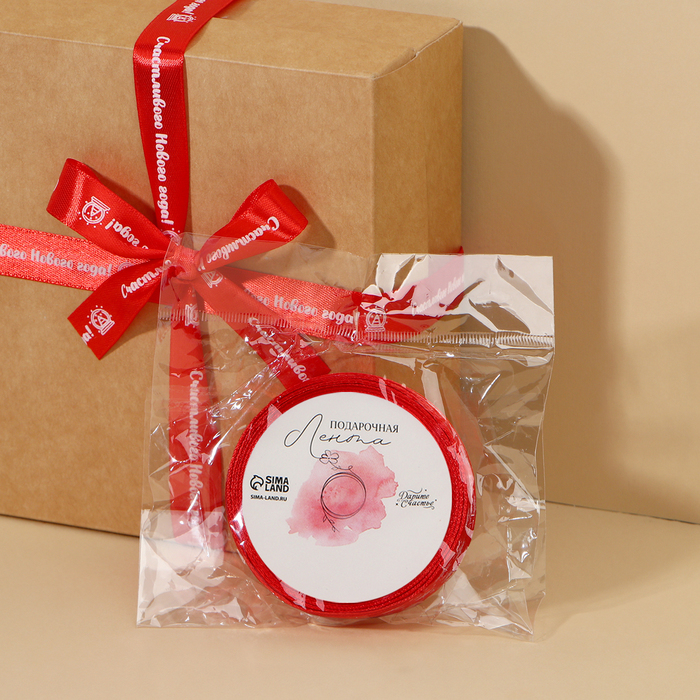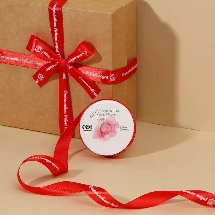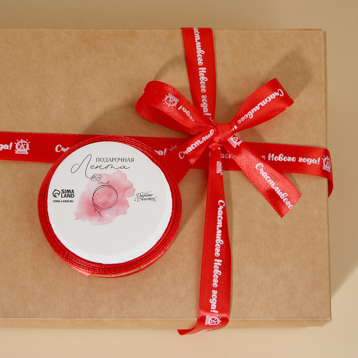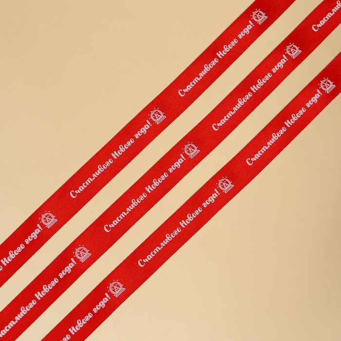 Лента атласная декоративная «Счастливого Нового года!», красная, 1,5 см × 5 м — Характеристики