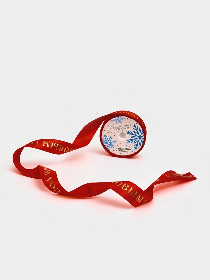 Лента атласная для упаковки подарков «С Новым годом» 2 см × 5 м, тиснение — Характеристики