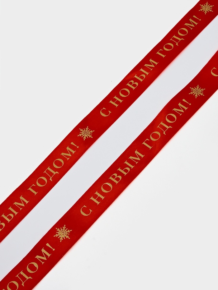 Лента атласная «С Новым годом!», 25 мм, 23±1 м, белая, красная №001
