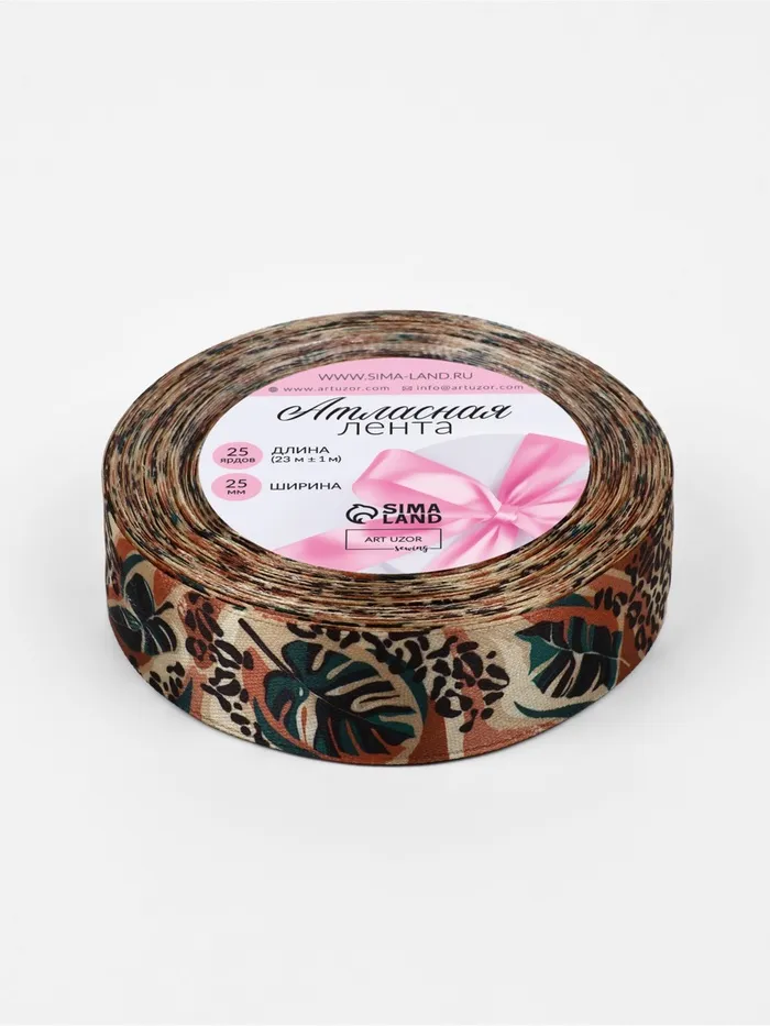 Лента атласная «Джунгли», 25 мм, 23±1 м, разноцветная — Характеристики