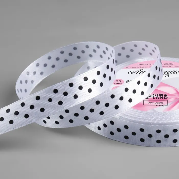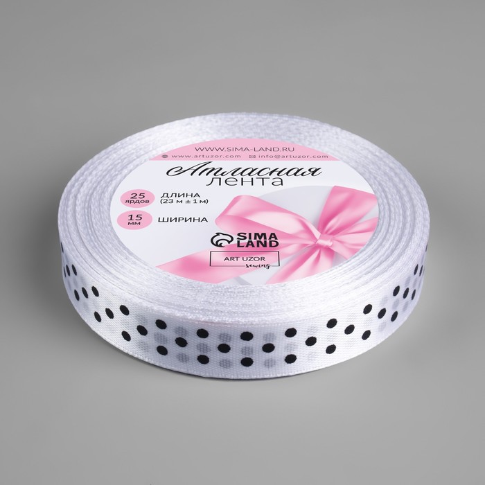 Лента атласная «Горошек», 15 мм, 23±1 м, белая №001 — Характеристики