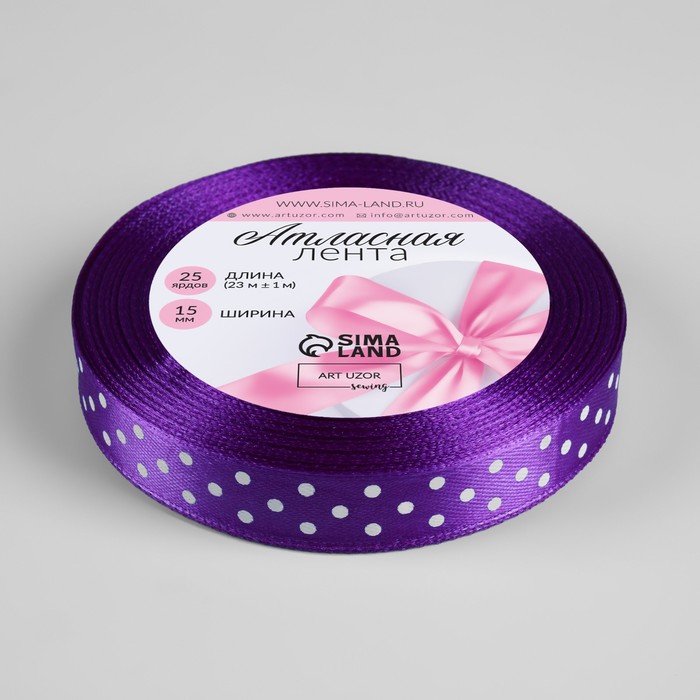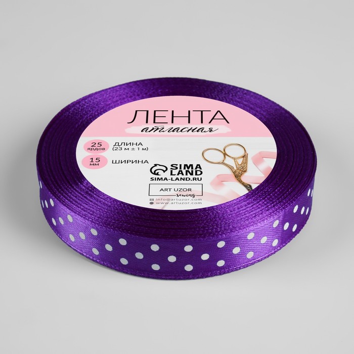Лента атласная «Горошек», 15 мм, 23±1 м, фиолетовая №154 — Характеристики