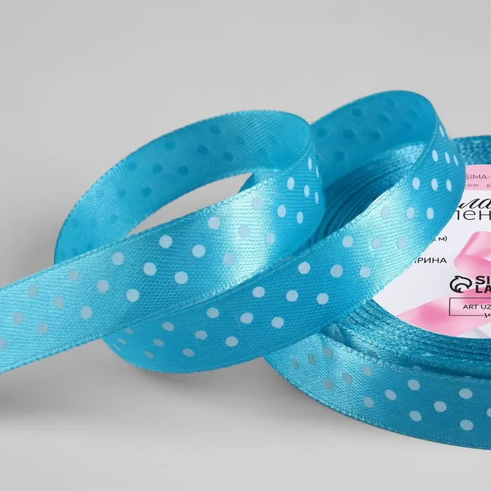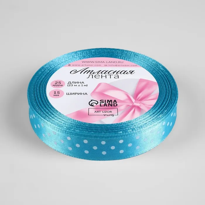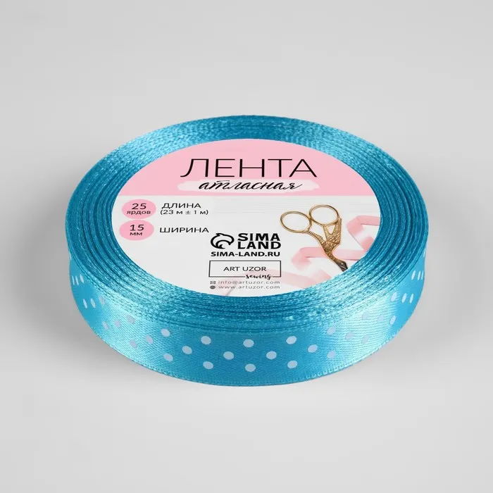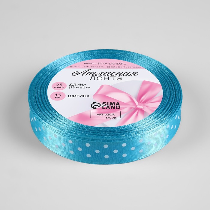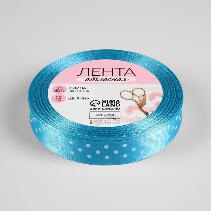 Лента атласная «Горошек», 15 мм, 23±1 м, голубая №020 — Характеристики