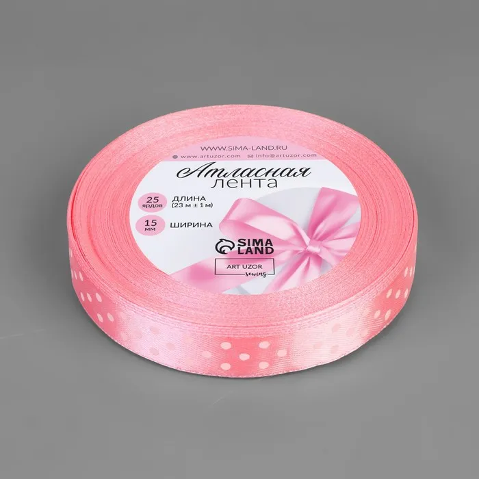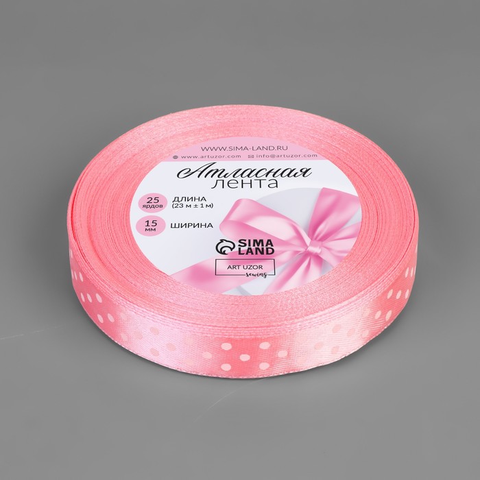Лента атласная «Горошек», 15 мм, 23±1 м, розовая №004 — Характеристики