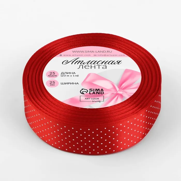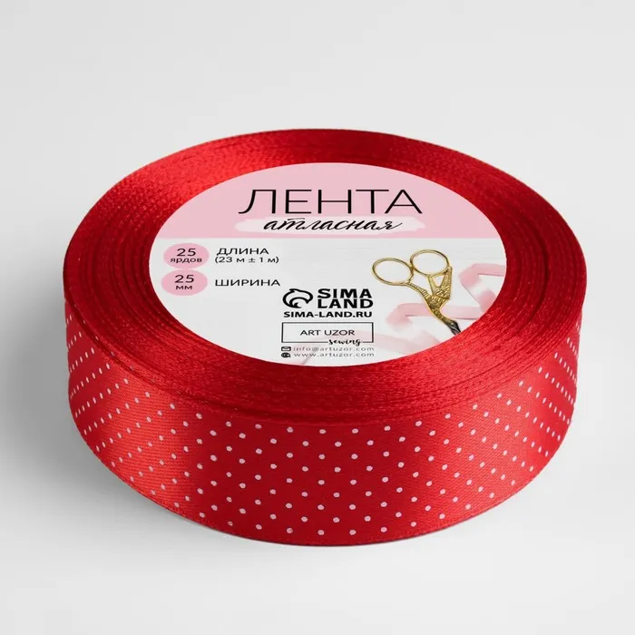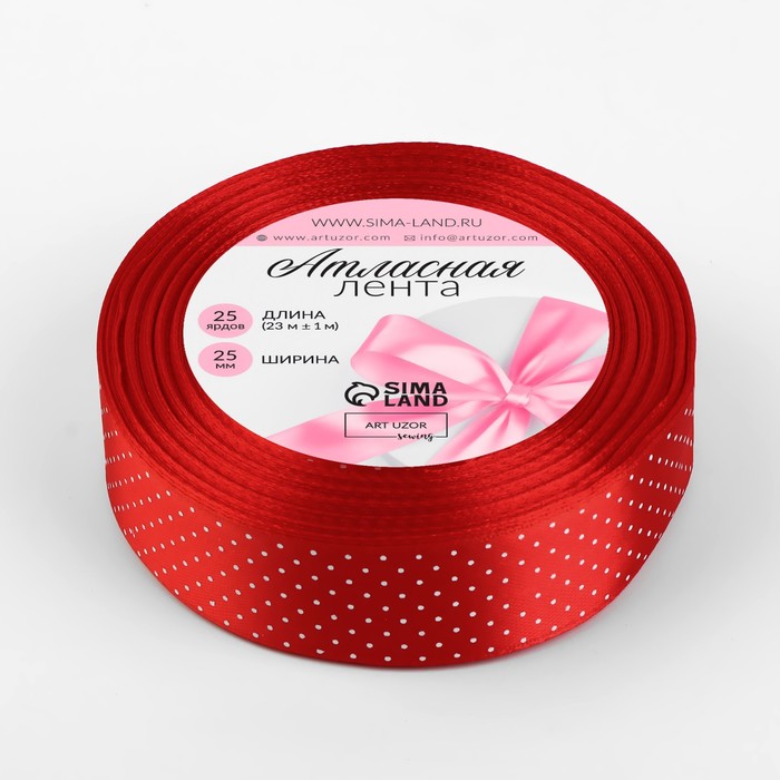 Лента атласная «Горошек», 25 мм, 23±1 м, красная №026 — Характеристики
