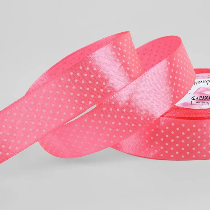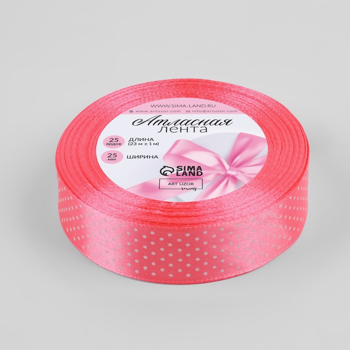 Лента атласная «Горошек», 25 мм, 23±1 м, розовая №005 — Характеристики
