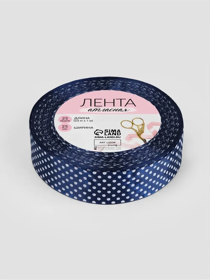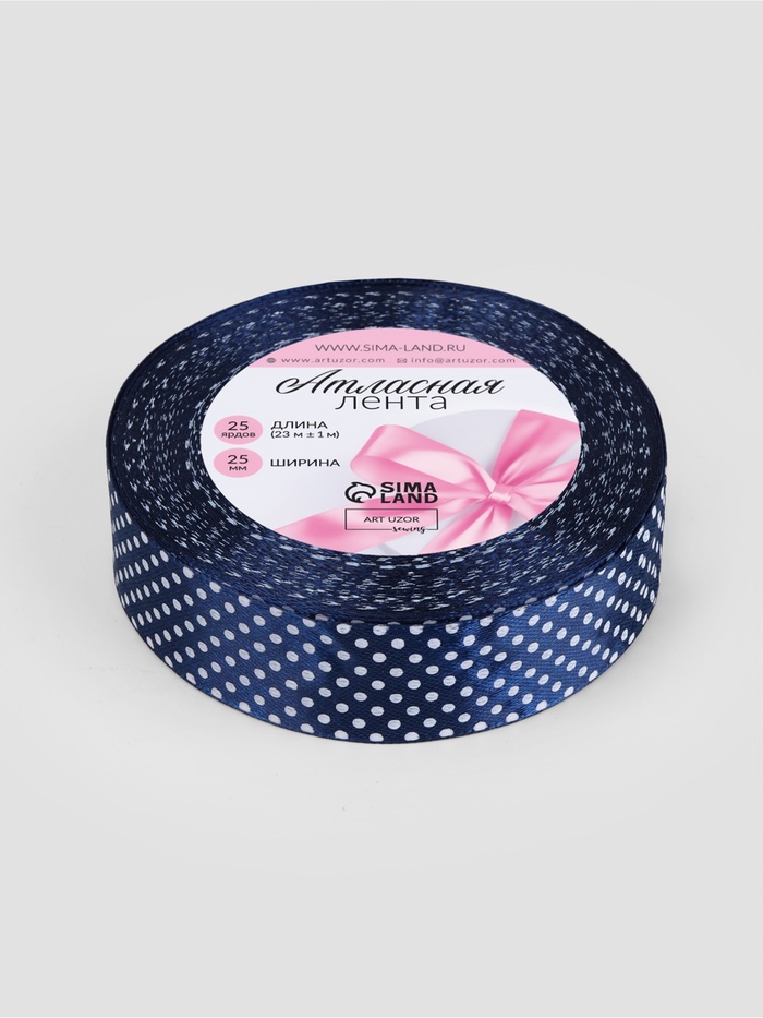Лента атласная «Горошек», 25 мм, 23±1 м, синяя №138 — Характеристики