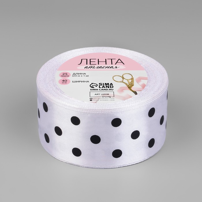 Лента атласная «Горошек», 40 мм, 23±1 м, белая №001 — Характеристики