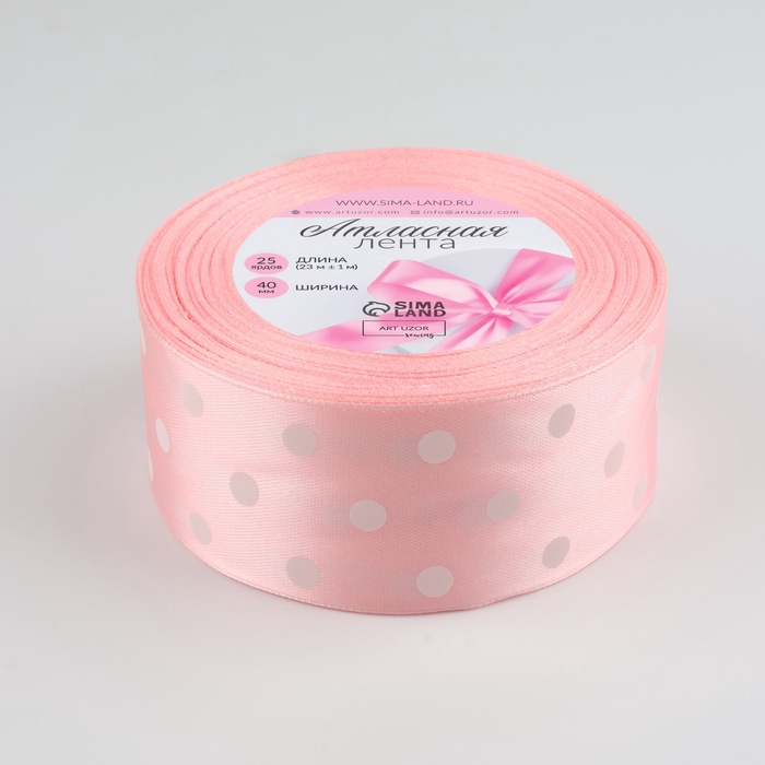 Лента атласная «Горошек», 40 мм, 23±1 м, розовая №004 — Характеристики