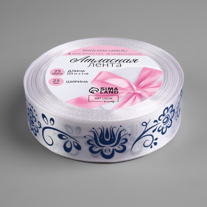Лента атласная «Гжель», 25 мм × 23 ± 1 м, цвет белый №001 — Характеристики