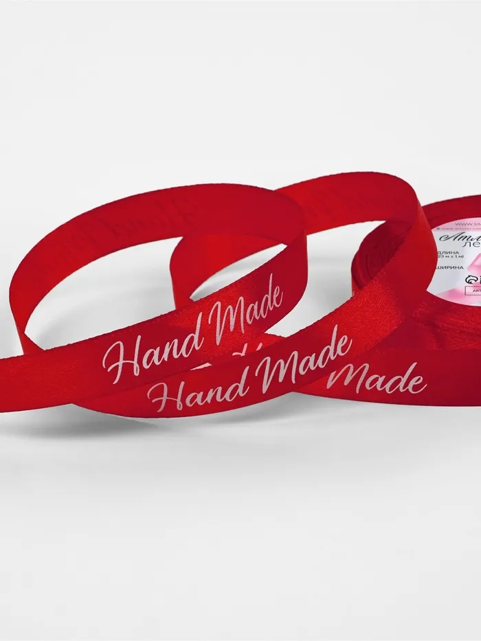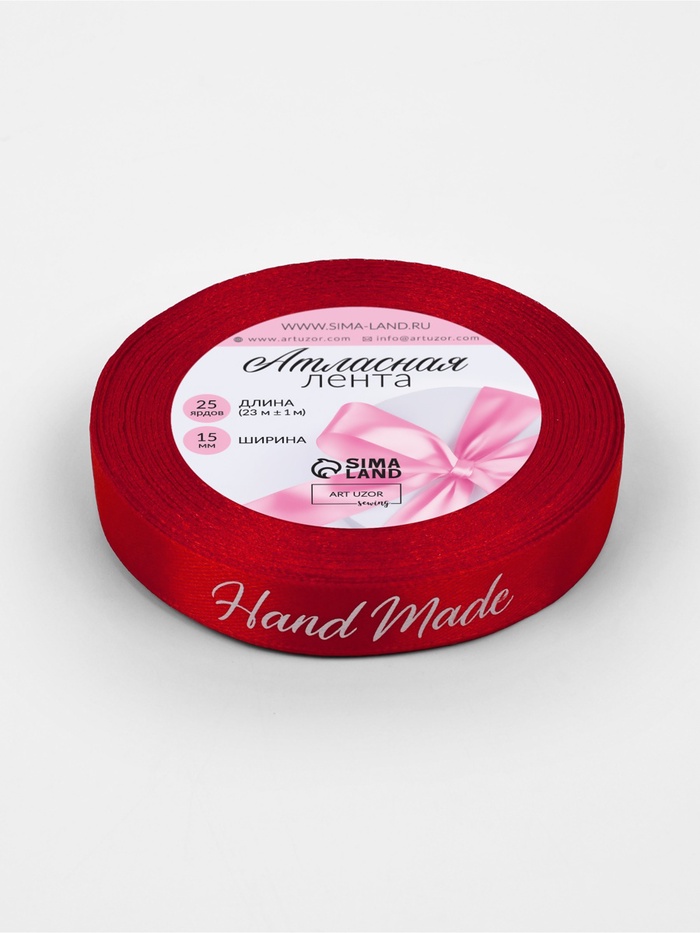 Лента атласная Handmade, 15 мм, 23±1 м, белая, красная — Характеристики