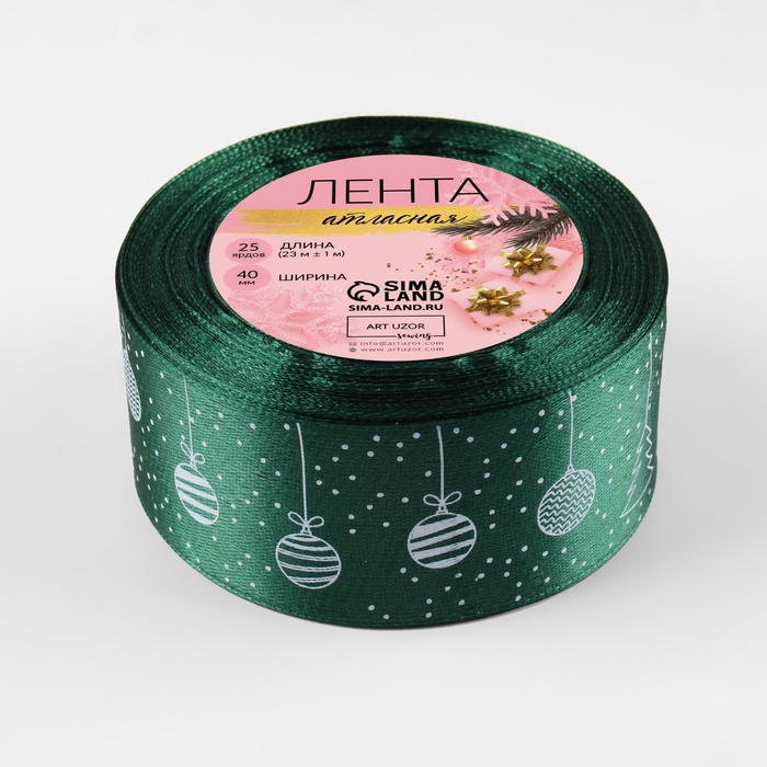 Лента атласная «Ёлочные игрушки», 40 мм, 23±1 м, тёмно-зелёная №49 — Характеристики