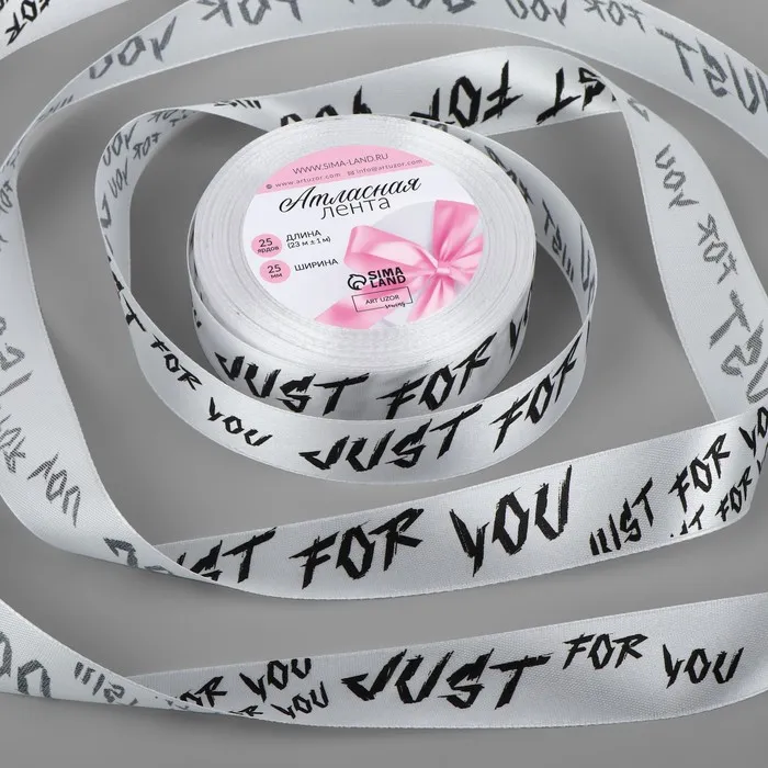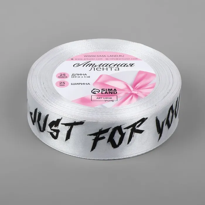 Лента атласная «Just for you», 25 мм, 23±1 м, белая №001 — Характеристики