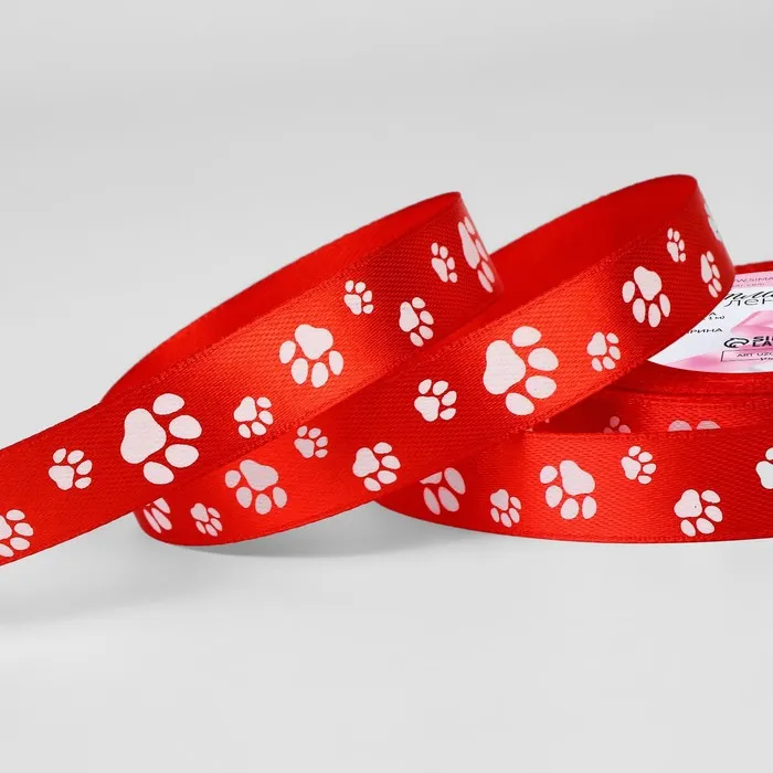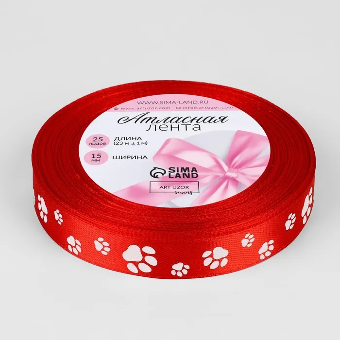Лента атласная «Лапки», 15 мм, 23±1 м, красная №026 — Характеристики