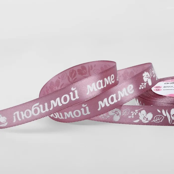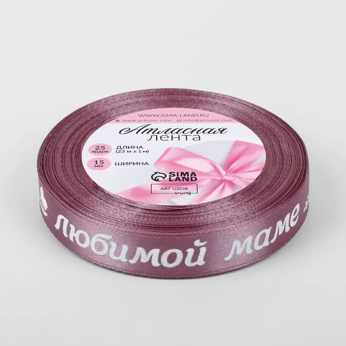 Лента атласная «Любимой маме», 15 мм, 23±1 м, розовая №091 — Характеристики