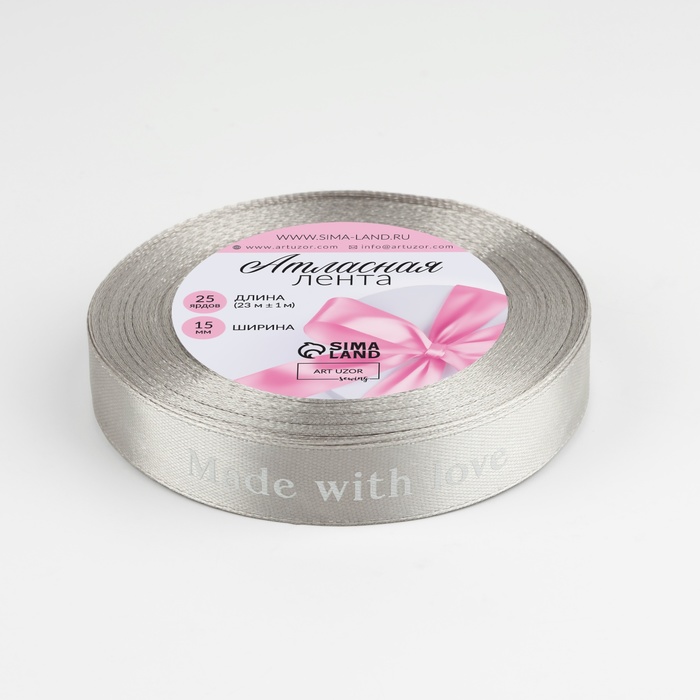 Лента атласная «Made with love», 15 мм, 23±1 м, светло-серая №179 — Характеристики