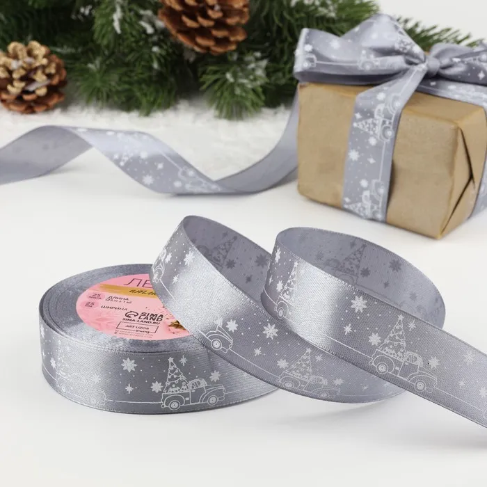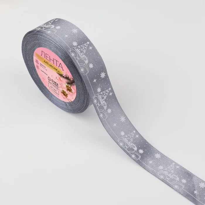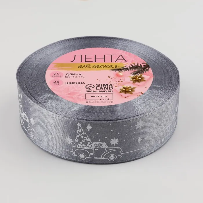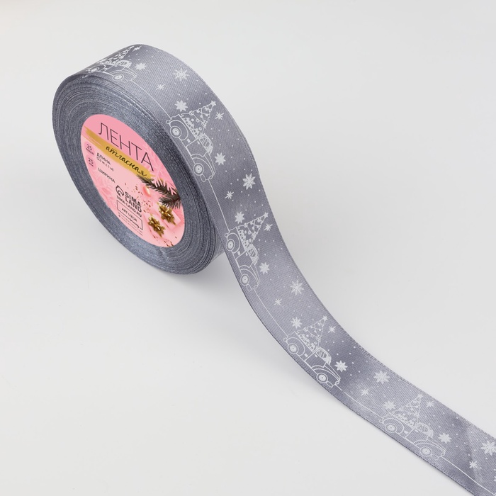 Лента атласная «Машина с ёлкой», 25 мм, 23±1 м, тёмно-серая №189 — Характеристики