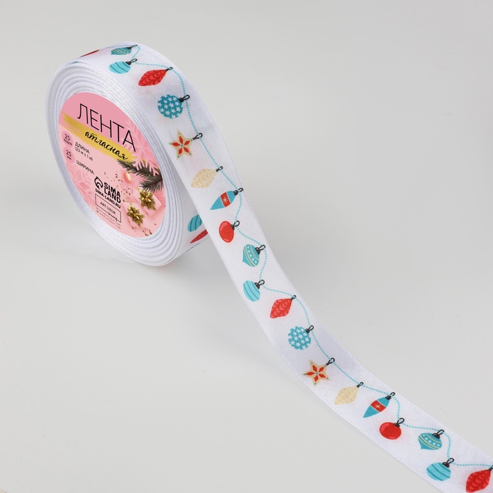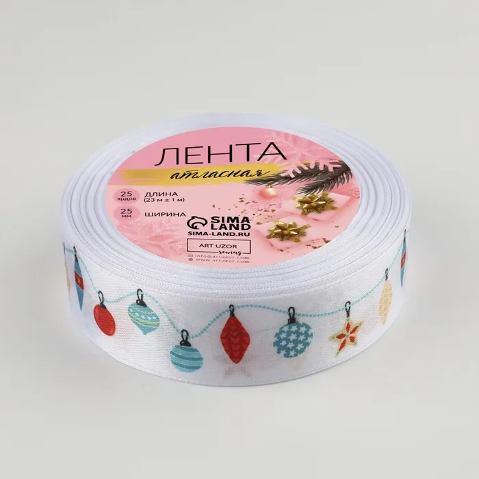 Лента атласная «Новогодний карнавал», 25 мм, 23±1 м, белая — Характеристики