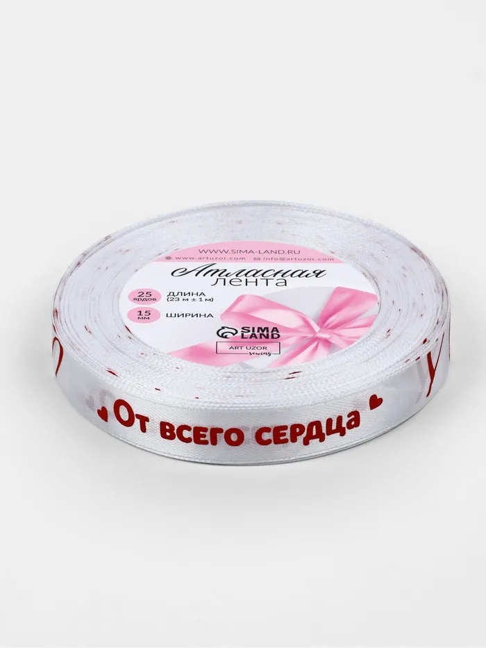Лента атласная «От всего сердца», 15 мм, 23±1 м, белая, красная — Характеристики