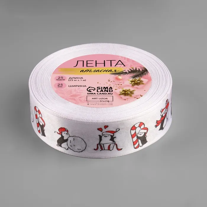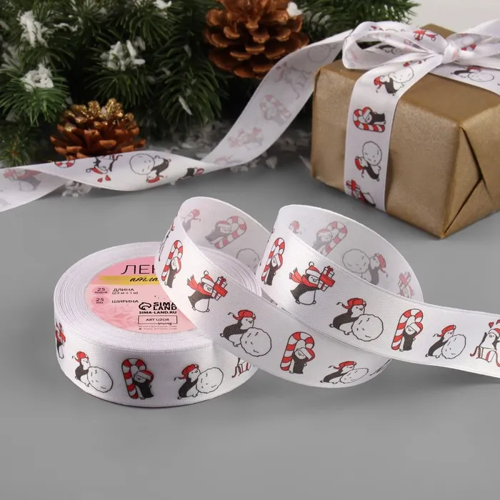 Лента атласная «Пингвины», 25 мм, 23±1 м, белая, красная, чёрный — Характеристики