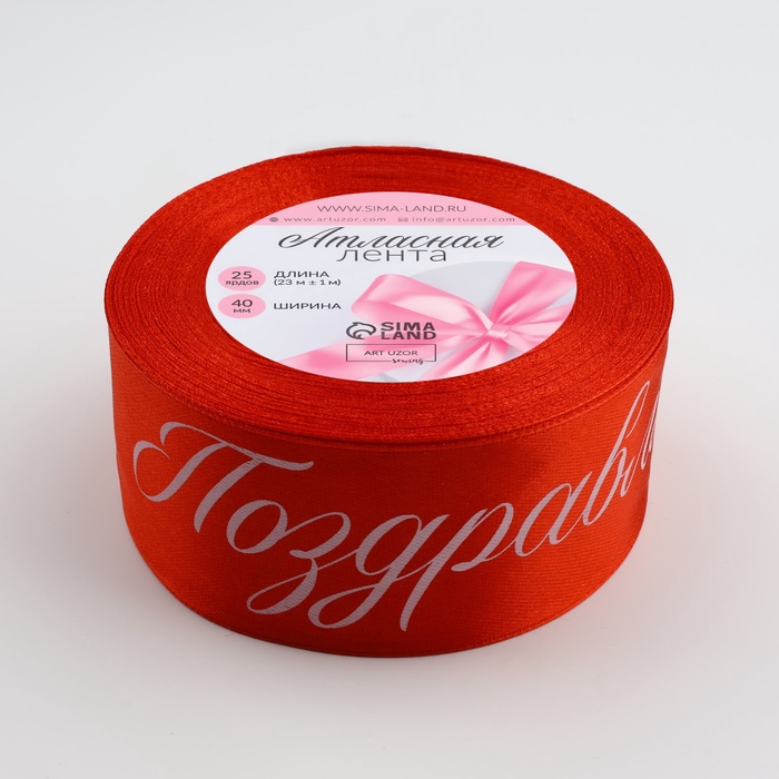 Лента атласная «Поздравляю», 40 мм, 23±1 м, красная — Характеристики