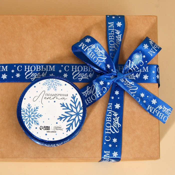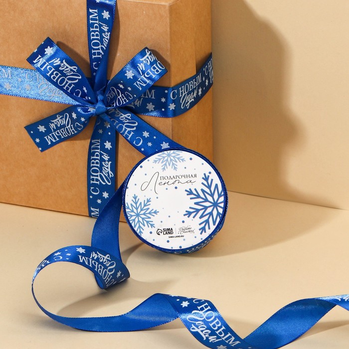 Лента атласная декоративная «С Новым годом!», 1,5 см × 5 м