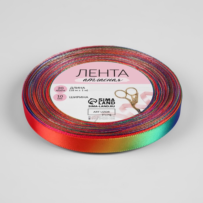 Лента атласная «Радуга», 10 мм, 18±1 м, разноцветная — Характеристики
