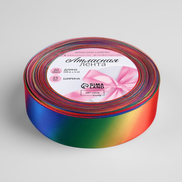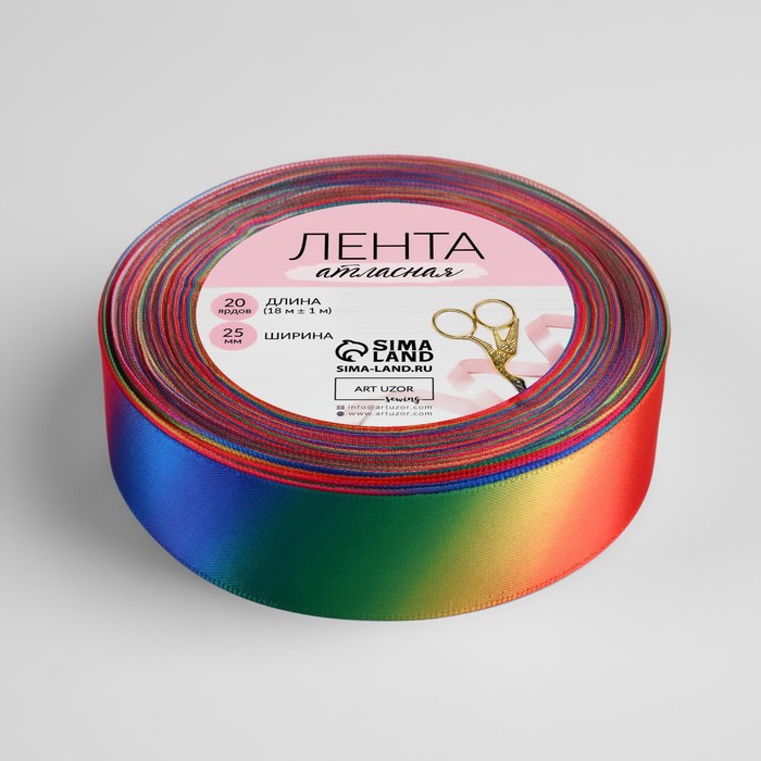 Лента атласная «Радуга», 25 мм × 18 ± 1 м, разноцветная