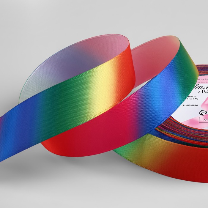 Лента атласная «Радуга», 25 мм × 18 ± 1 м, разноцветная — Характеристики