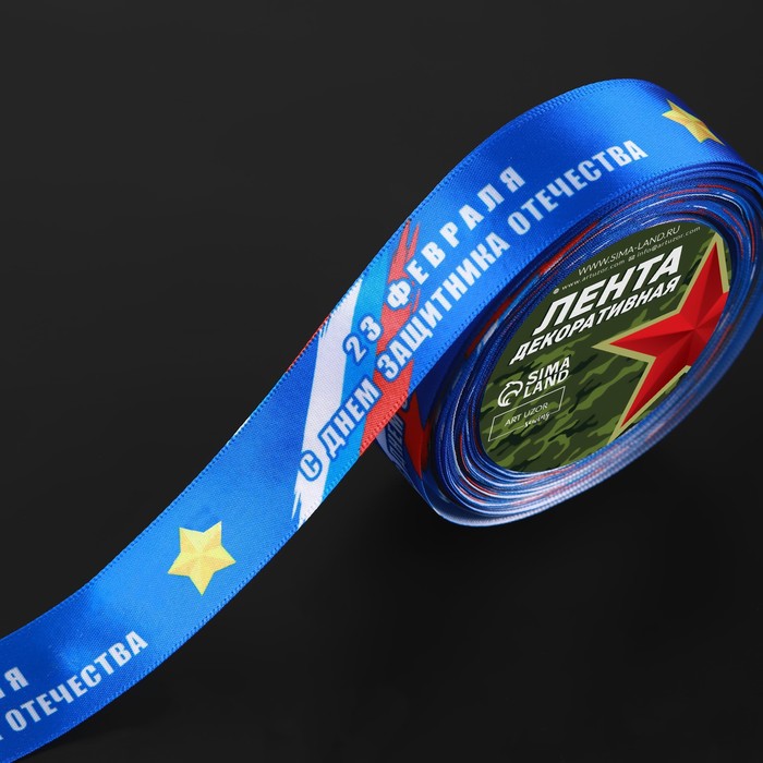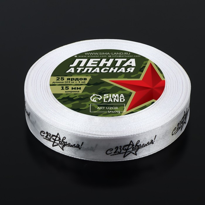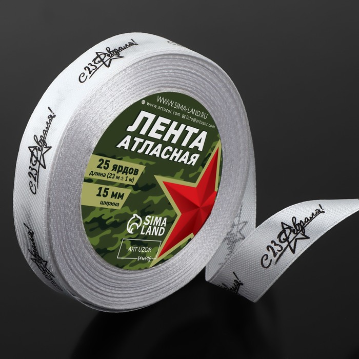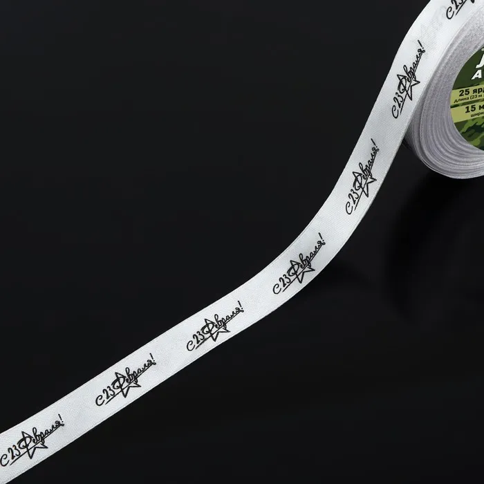 Лента атласная «С 23 Февраля!», 15 мм, 23±1 м, белая — Характеристики