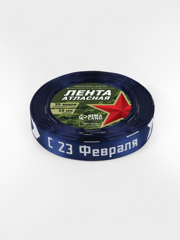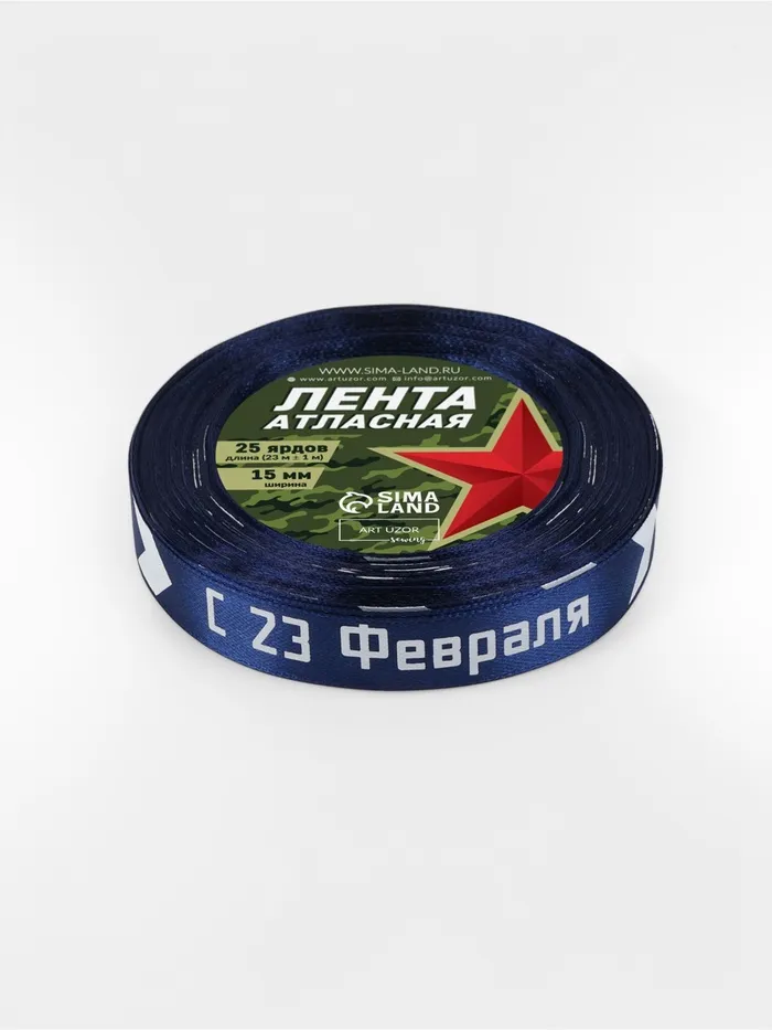 Лента атласная «С 23 февраля», 15 мм, 23±1 м, синяя — Характеристики