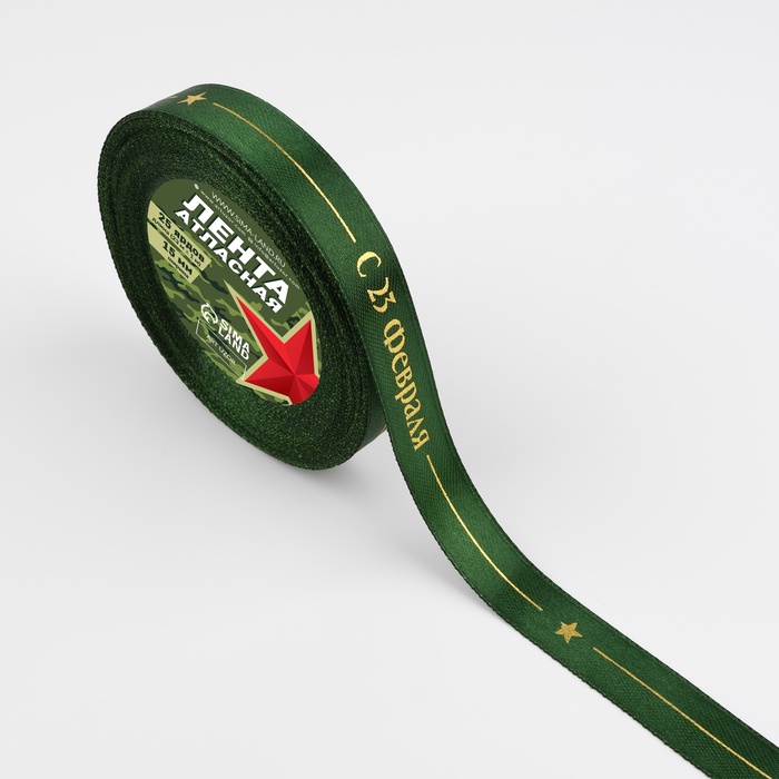 Лента атласная «С 23 Февраля!», 15 мм, 23 м ± 1 м, зелёная — Характеристики