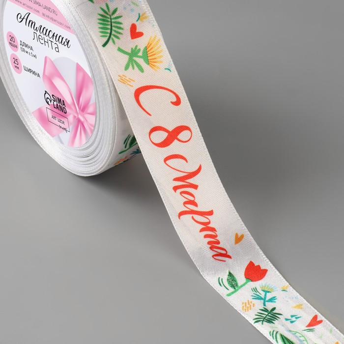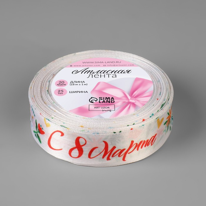 Лента атласная «С 8 Марта», 25 мм, 23±1 м, разноцветная — Характеристики