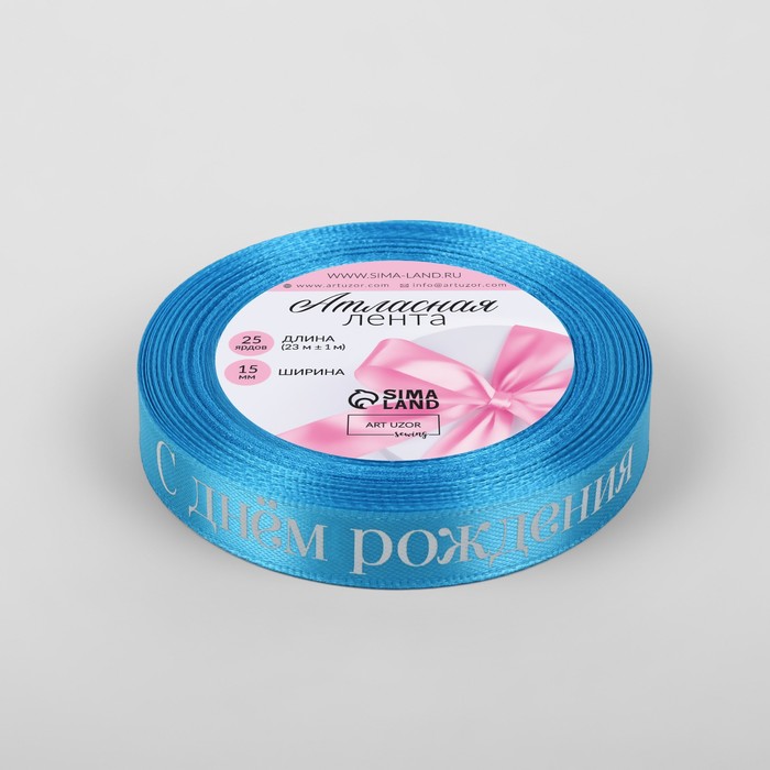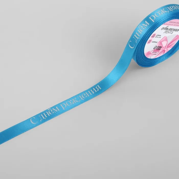 Лента атласная «С Днём рождения», 15 мм, 23±1 м, голубая — Характеристики