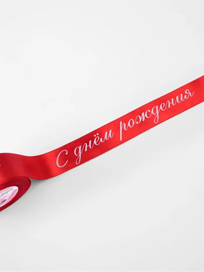 Лента атласная «С днём рождения», 40 мм, 23±1 м, красная, белая — Характеристики