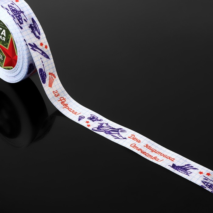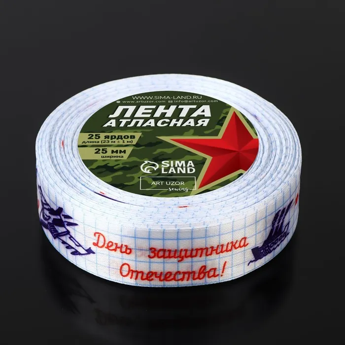 Лента атласная «С Днём защитника Отечества!», 25 мм × 23 ± 1 м, цвет белый — Характеристики