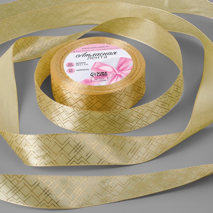 Лента атласная с металлической нитью «Узоры со звездой», 60 мм, 9±0.5 м, цвет белый/серебряный — Характеристики