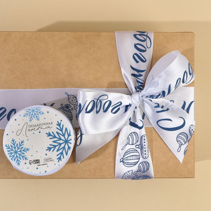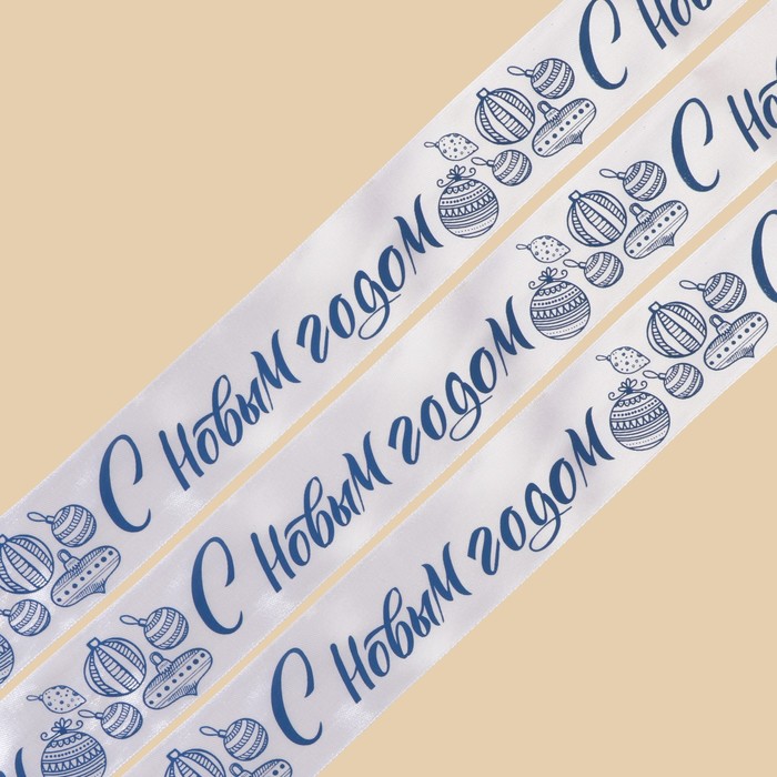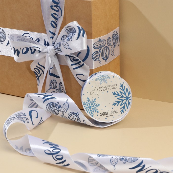 Лента атласная «С Новым годом», белая, 4 см × 5 метров — Характеристики