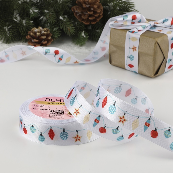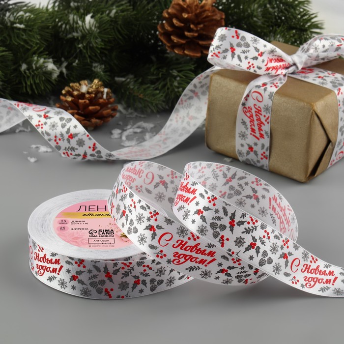 Лента атласная «С Новым годом!», красная, 2 см × 25 ярдов (22,5 м) — Характеристики