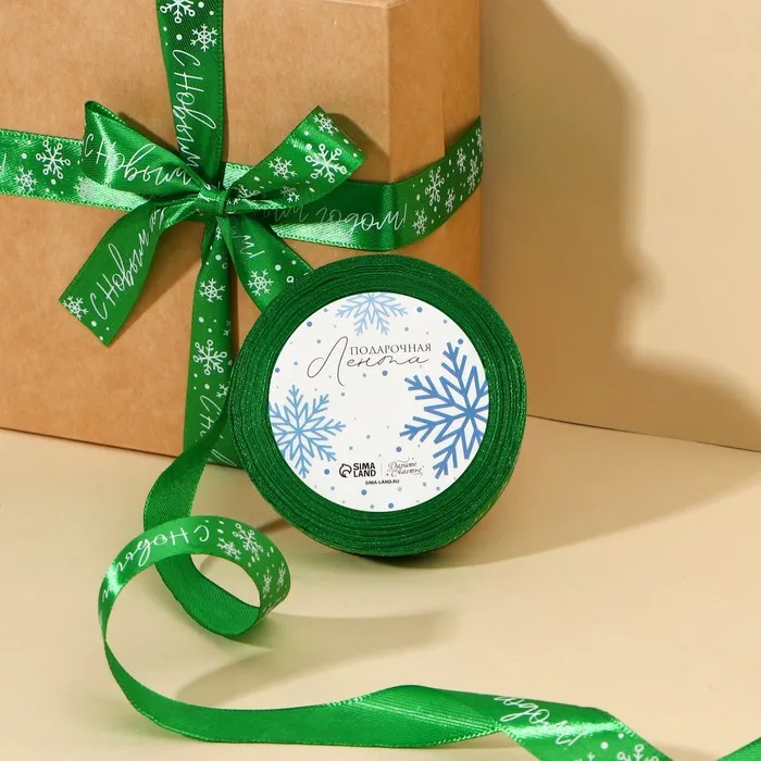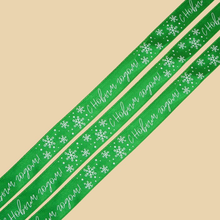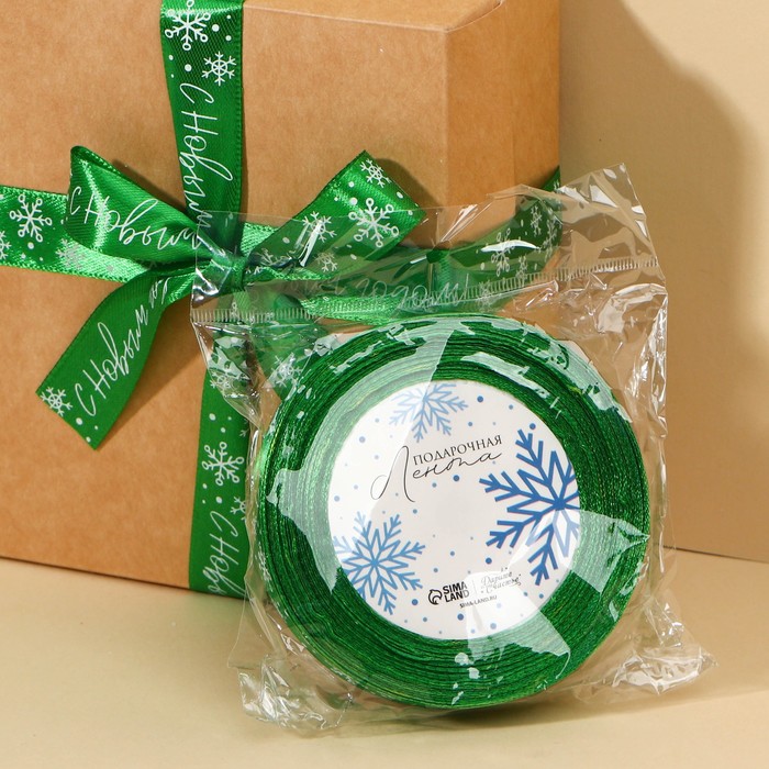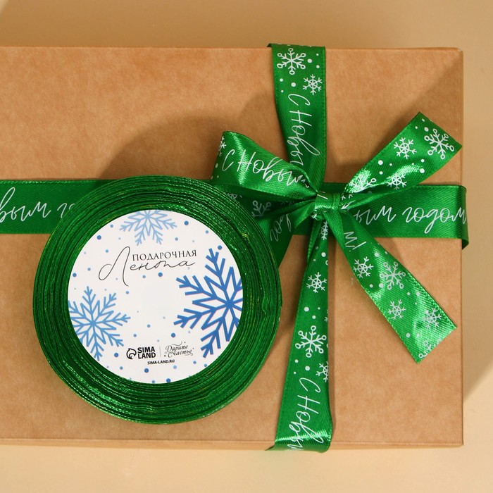 Лента атласная «С Новым годом», зелёная, 2 см х 22.5 м — Характеристики