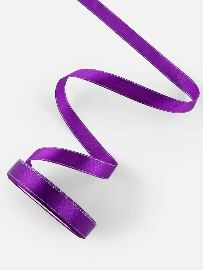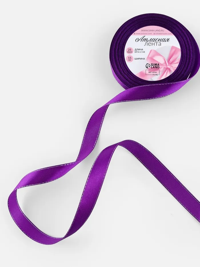 Лента атласная, с серебряным люрексом, 15 мм, 23±1 м, фиолетовая №35 — Характеристики