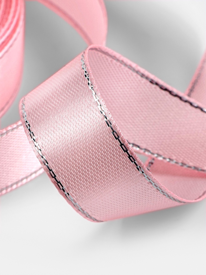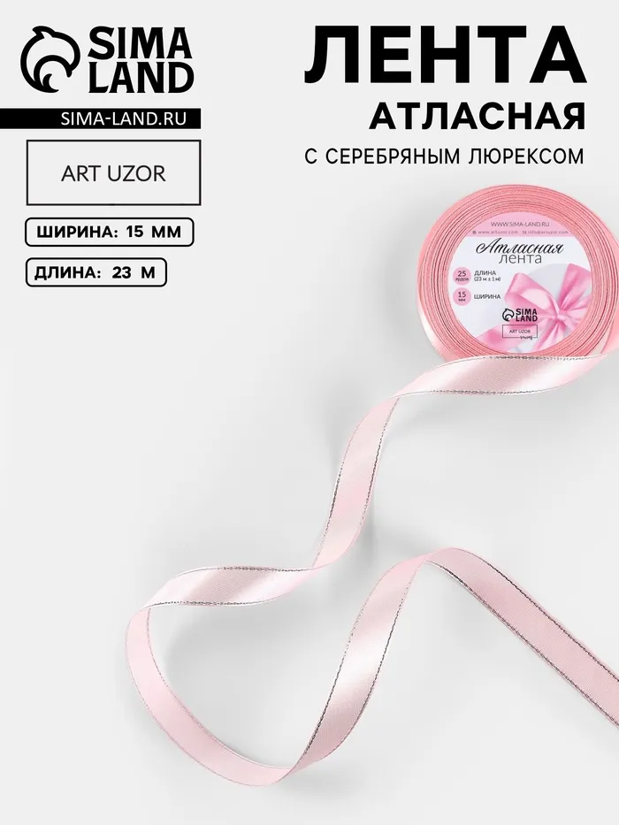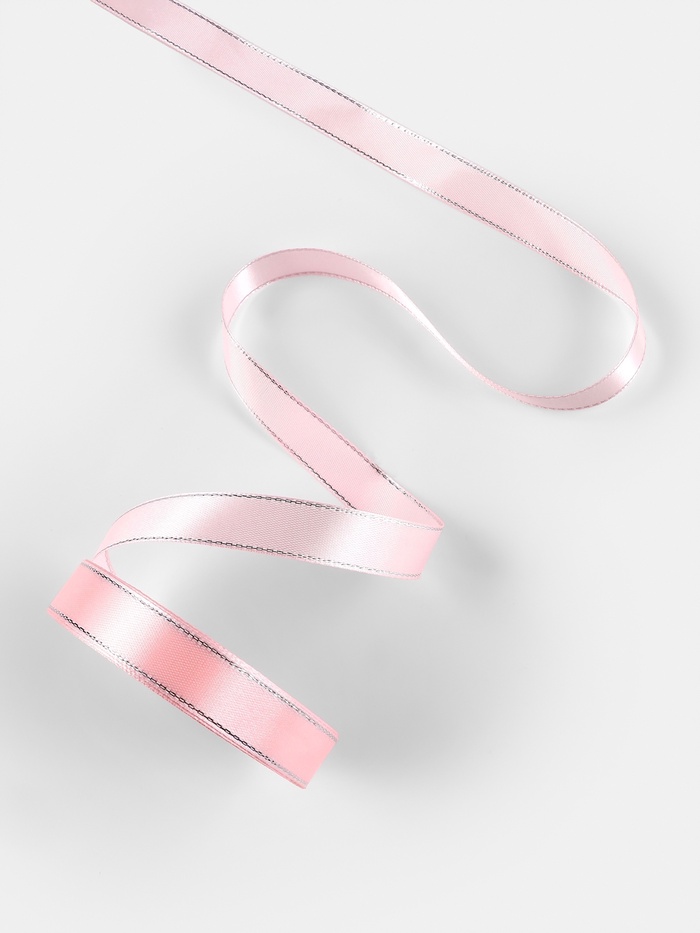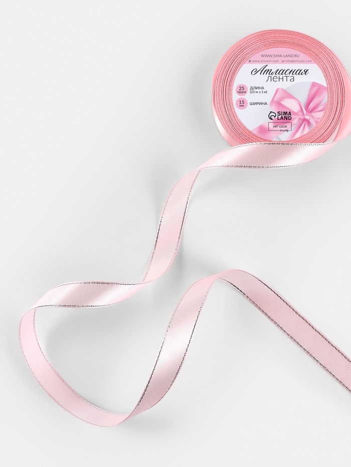 Лента атласная, с серебряным люрексом, 15 мм, 23±1 м, розовая №004 — Характеристики