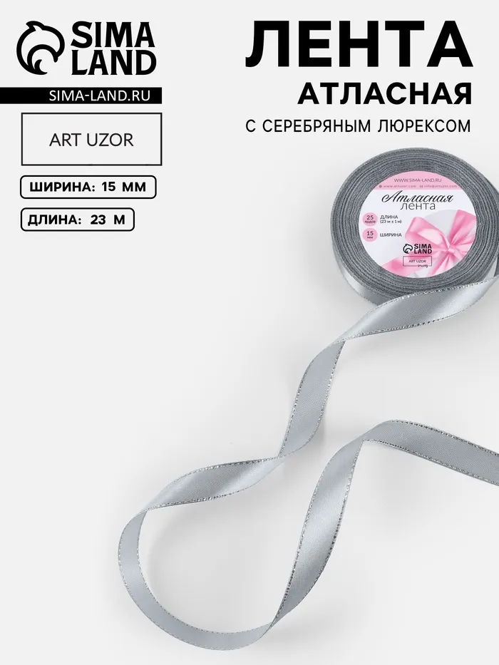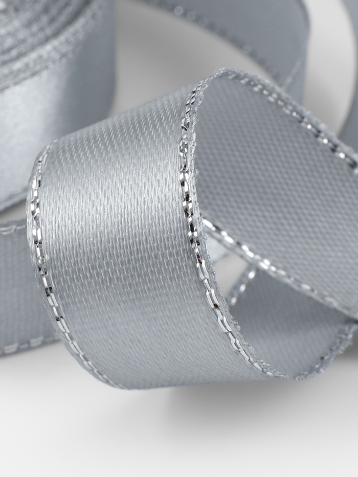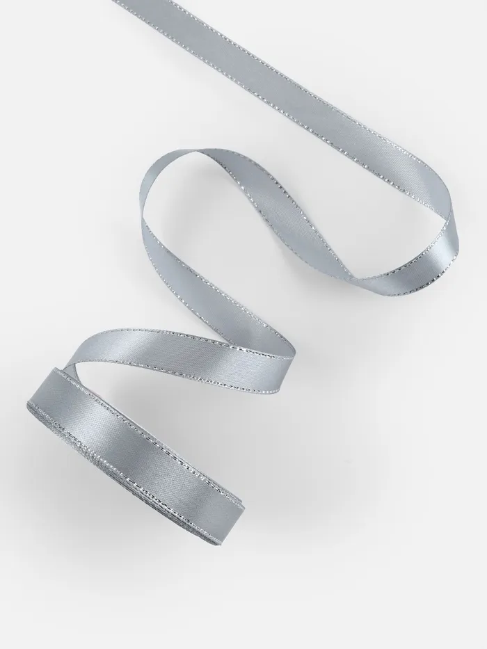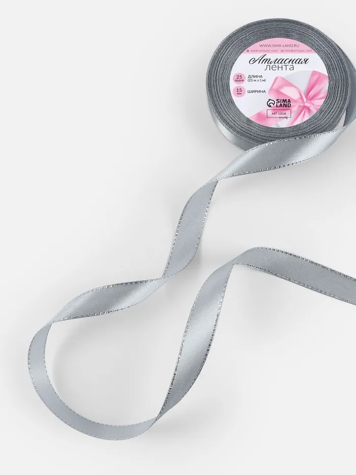 Лента атласная, с серебряным люрексом, 15 мм, 23±1 м, серая №59 — Характеристики