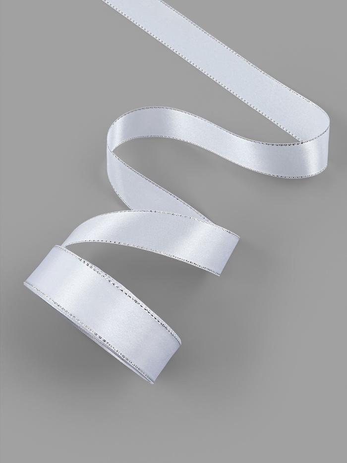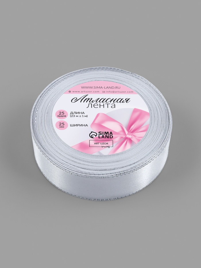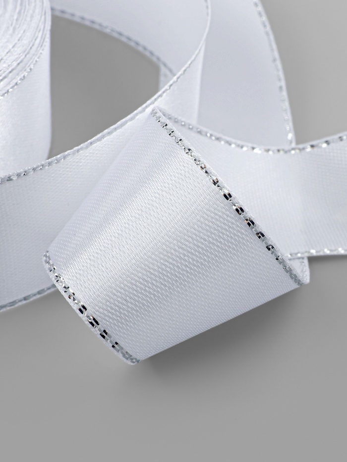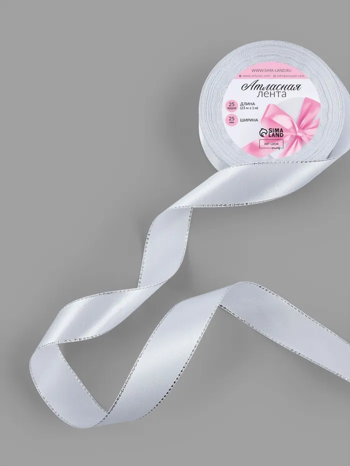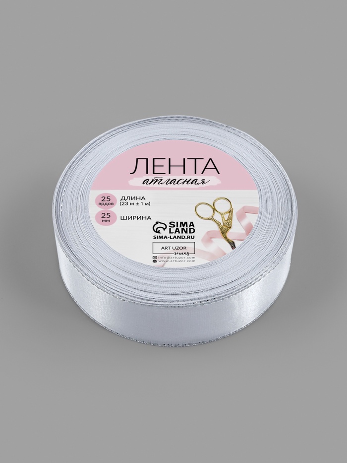 Лента атласная, с серебряным люрексом, 25 мм, 23±1 м, белая №001 — Характеристики