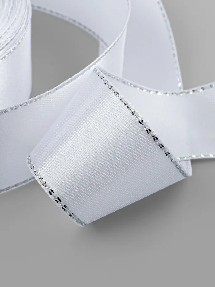 Лента атласная, с серебряным люрексом, 25 мм, 23±1 м, белая №001