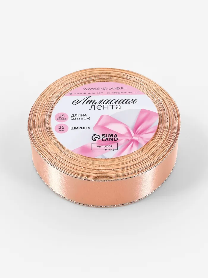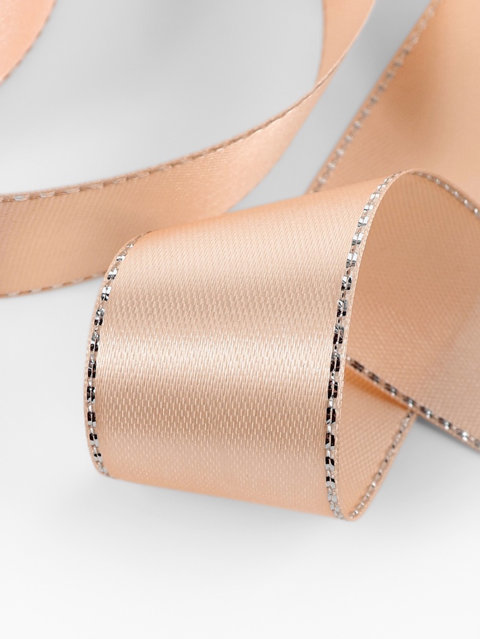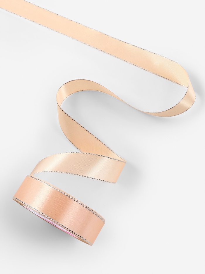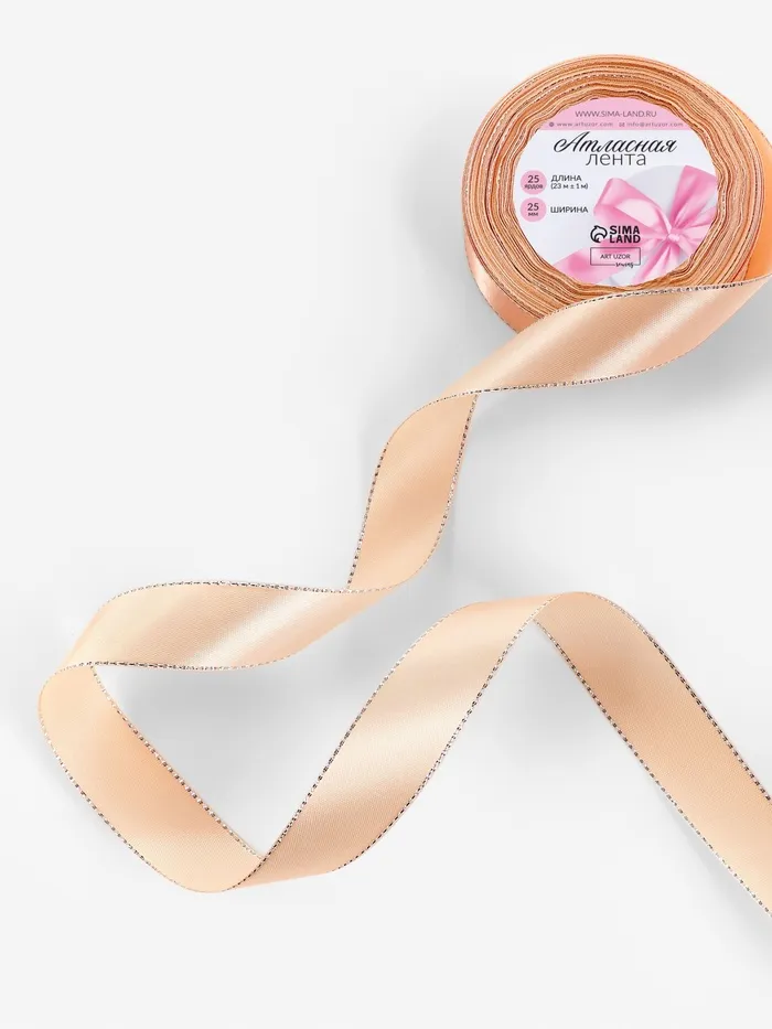 Лента атласная, с серебряным люрексом, 25 мм, 23±1 м, светло-бежевая №007 — Характеристики