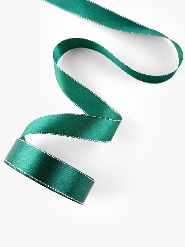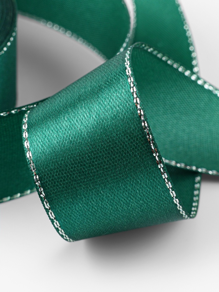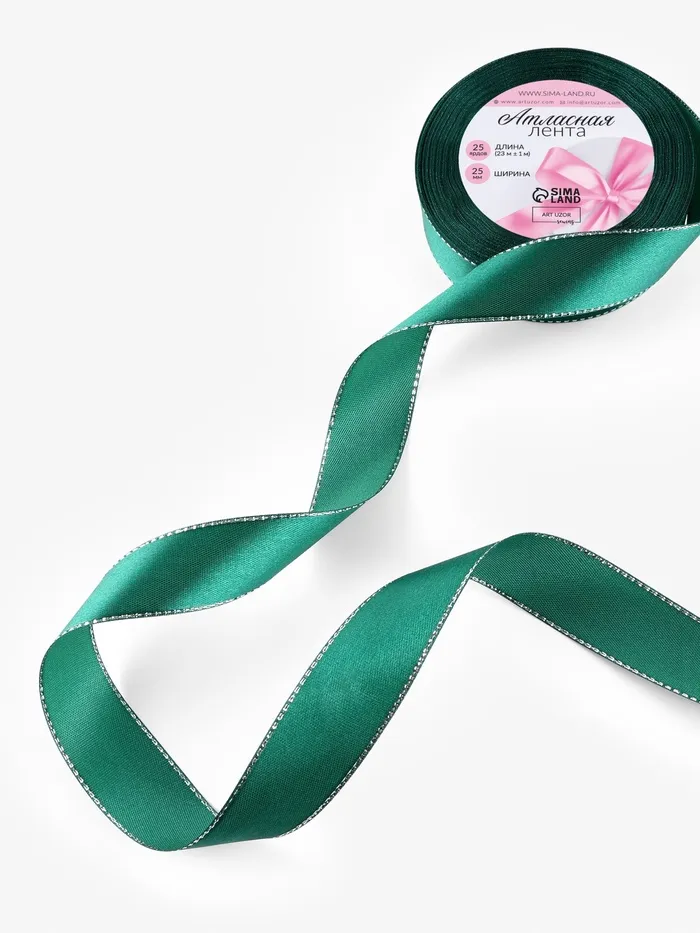 Лента атласная, с серебряным люрексом, 25 мм, 23±1 м, зелёная №70 — Характеристики